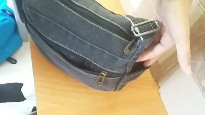 Il est en bon état, il y a juste une attache de fermeture qui c'est cassée, mais la fermeture marche toujours (celle de la petite poche avec le drapeau) et la longueur de la sangle est réglable