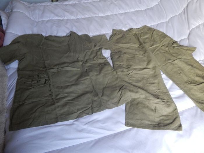 ensemble pantalon taille élastique + haut kaki clair. nygel