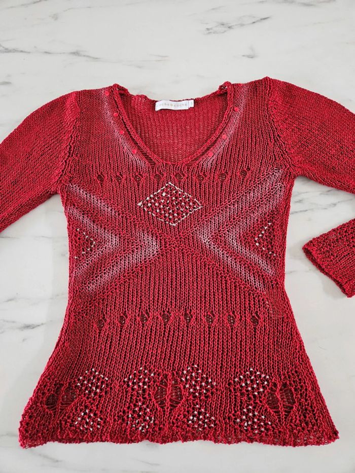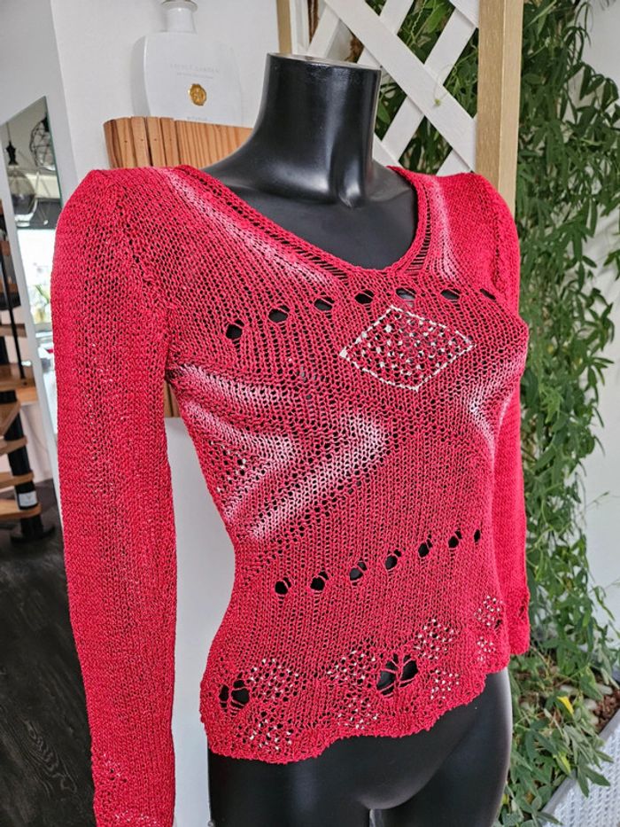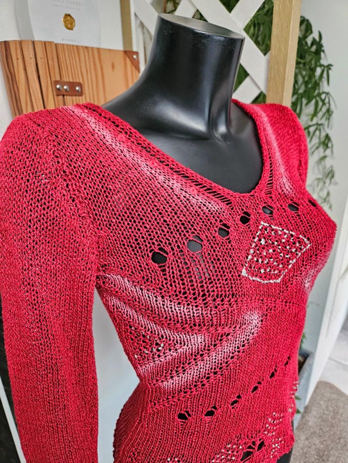 Cache cache pull en maille bordeaux taille S - photo numéro 11