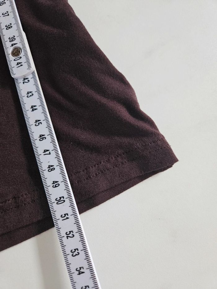 Portée 1 fois elle est en état impeccable. Le marron est plus foncé comme la blouse a plat. Matière extensible et dimensions sur les photos. Pour taille XS/S