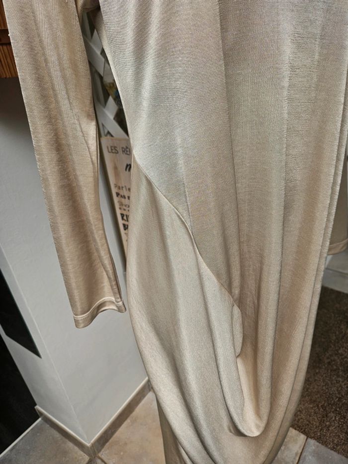 Robe matière légère et agréable. Assez spécial mais superbe portée pour taille M/L Longueur sur les photos En état impeccable
