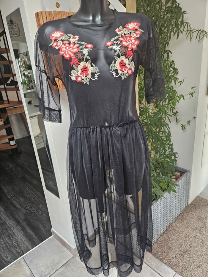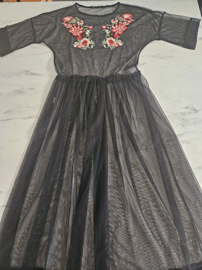 Zara robe noir en tulle transparente taille S - photo numéro 1