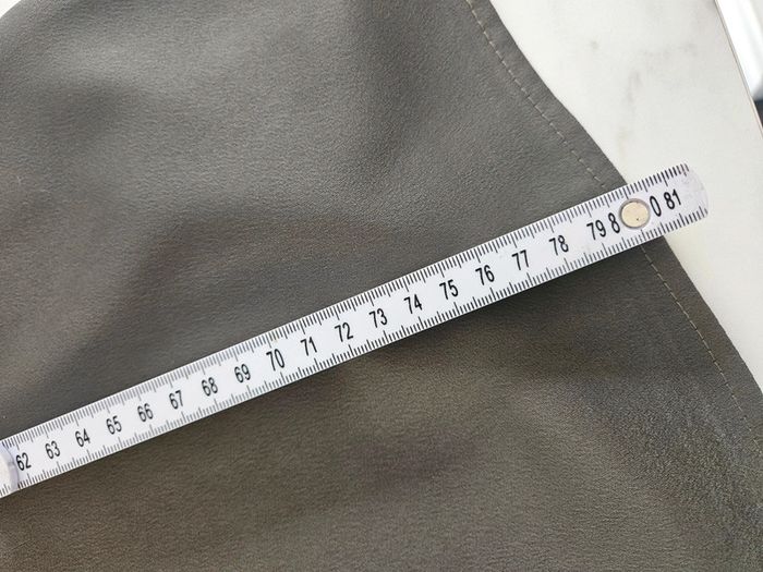 Portée mais reste en très bon état. Matière lisse et agréable. Dimensions sur les photos La couleur est kaki et bien plus jolie en vrai