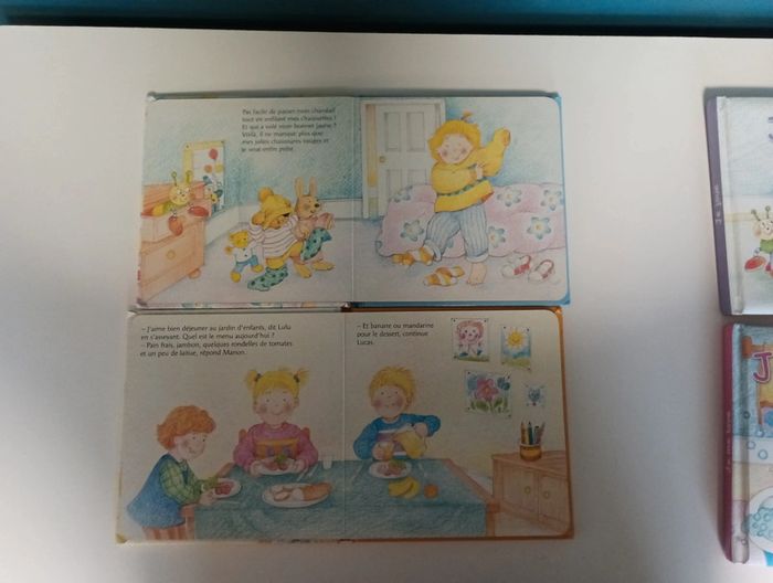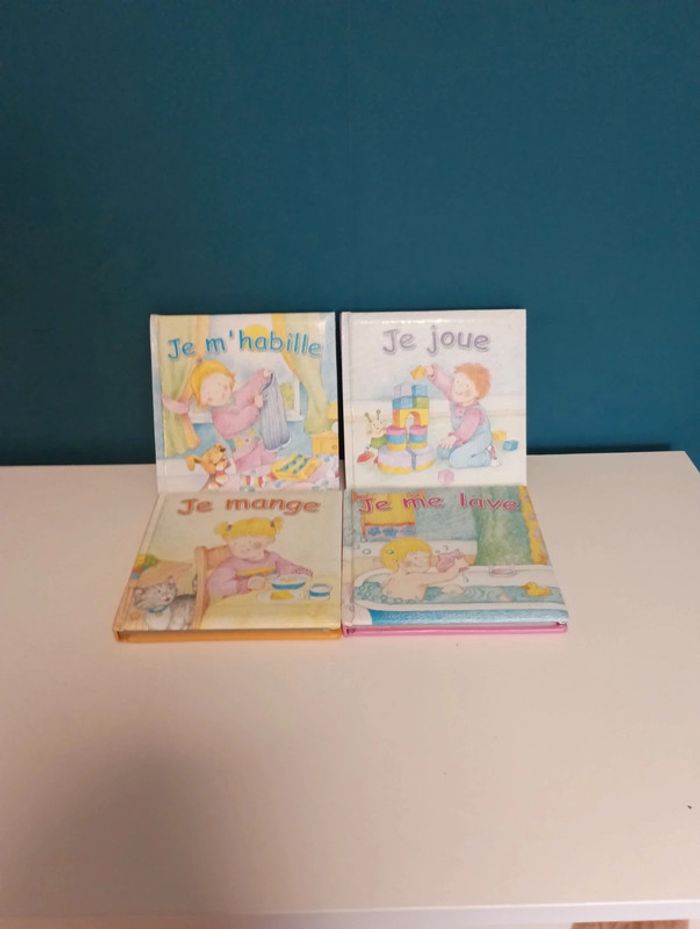 Lot complet de livres cartonnés comprenant les titres suivants : Je m'habille Je me lave Je joue Je mange