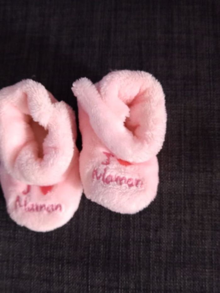 Chaussons bébé taille unique. J'aime maman. Rose. Très doux