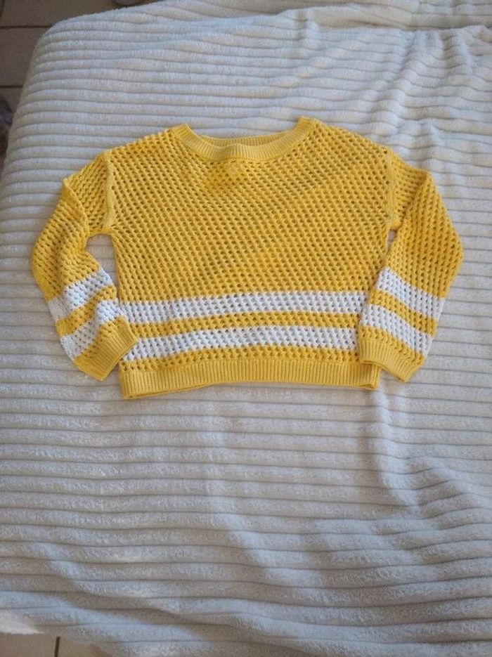 Joli pull à maille jaune et blanc pour le printemps taille 10 ans