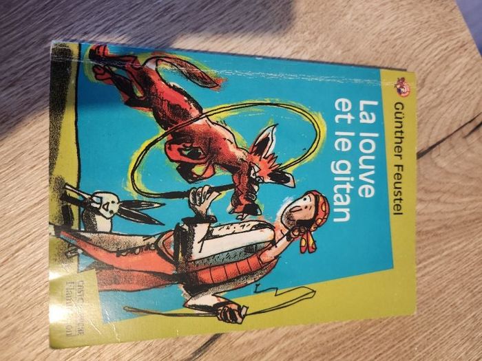 Livre " La louve et le gitan " de Günther Feustel. Tâche de blanco sur la page pour cacher le nom Livre vieilli par le temps