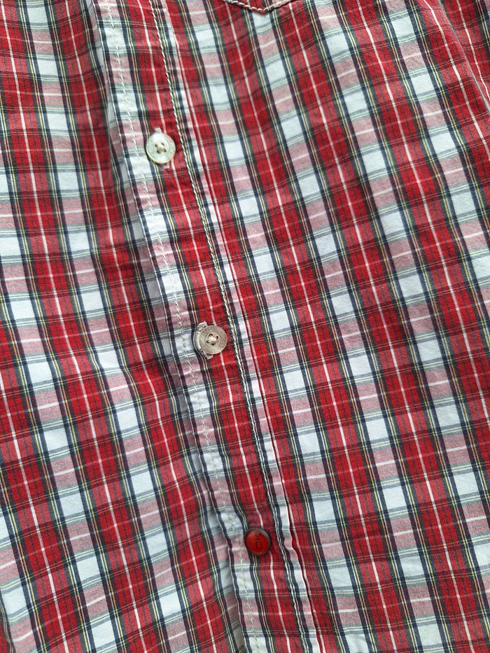 Chemise à manches longues Marque Okaïdi Taille 8 ans 126 cm Couleur rouge, blanc, noir, jaune Imprimé avec motif rayures Fermeture par boutons Poche ventrale Très bon état 🚨 Réductions activées sur les lots 🚨 🟡 2 articles -5% 🟠 3 articles -10% 🔴 5 articles et plus -15% #8ansgarconevaura76 #chemise #okaidi #8ans #126cm
