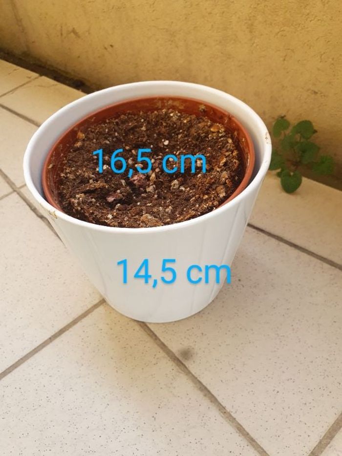 Céramique blanche avec relief Sans le pot en plastique, et vide sans terre Diamètre 16,5 cm Hauteur 14,5 cm