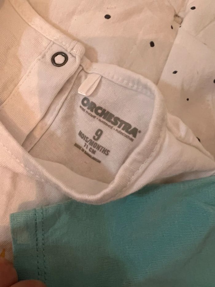 2 pyjamas Orchestra en taille 9 mois. Coton fin. Très bon état, très peu portés.