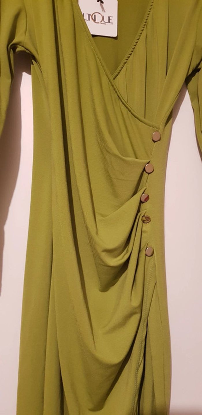 #caro_35800robe Robe vert olive Drapé devant bouton doré T36/40 #neufavecetiquette N hésitez pas a faire un des lots je rajoute un geste commercial