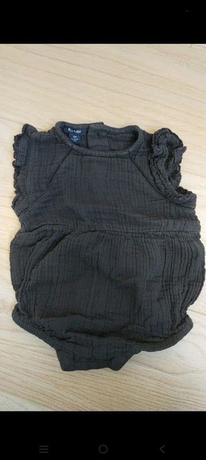 Combi barboteuse été noir 3 mois, kiabi, léger, élastique aux cuisses, boutons et pression ok. Voir photos, propre et non fumeur. #3m_djlaurita