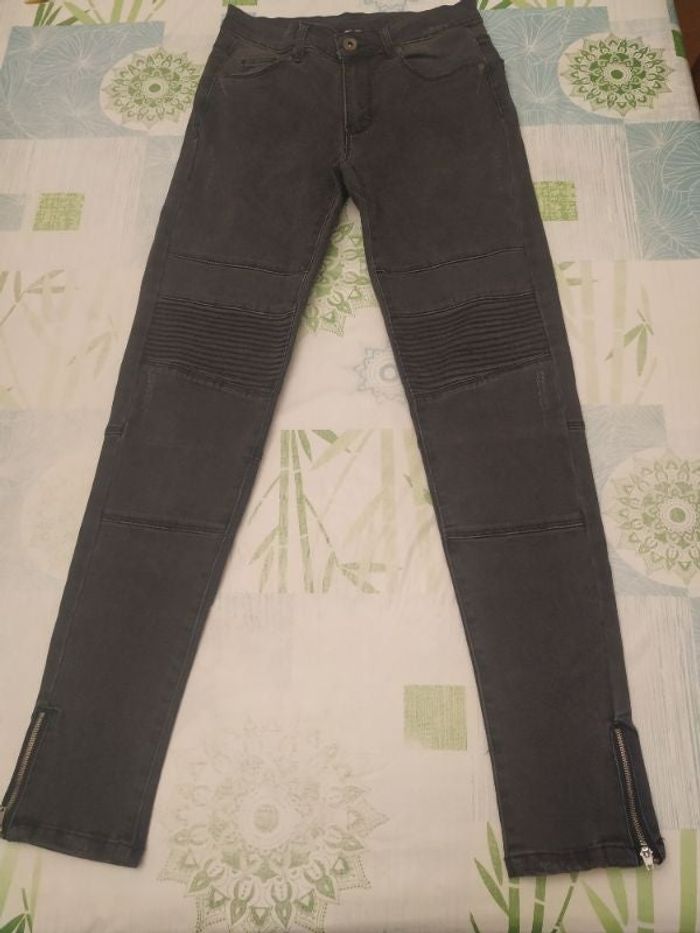 Très bon état, comme neuf Fermetures en bas des jambes Jean non pas troué mais élimé à plusieurs endroits pour le style.