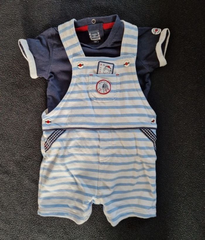 Ensemble neuf terre de marins Juste lavé Salopette + tee shirt 6 mois