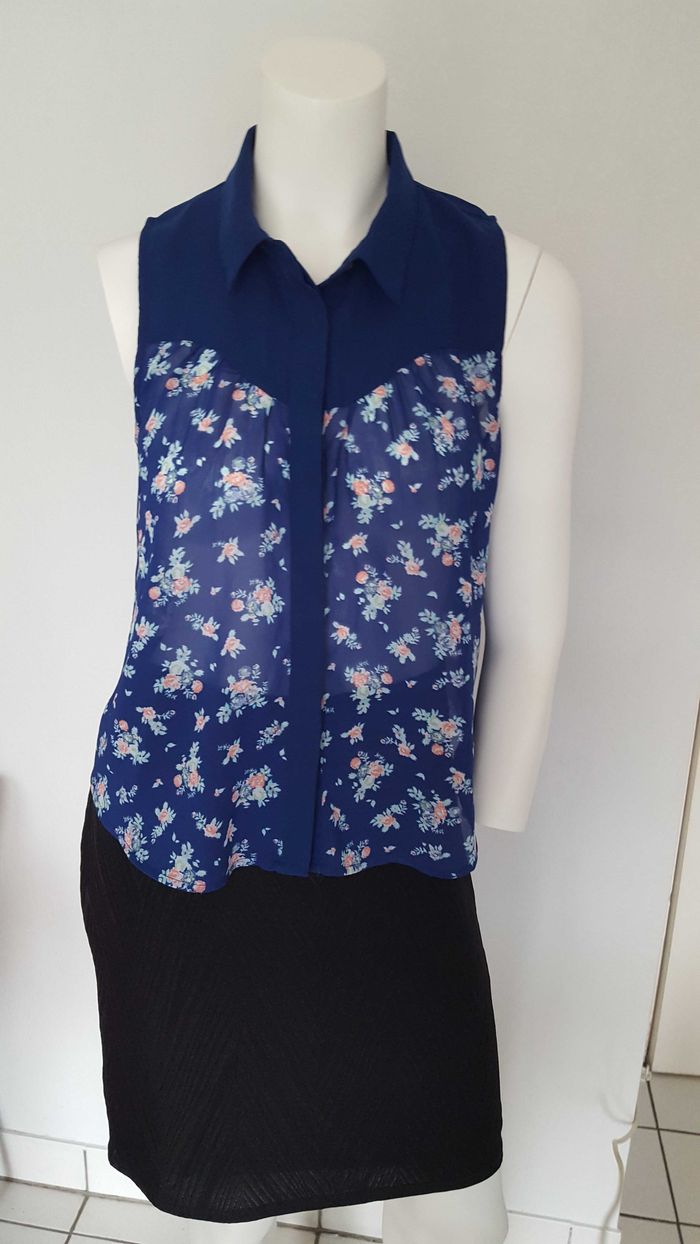 Chemise ton bleu fleurie. Boutons devant. T38/40