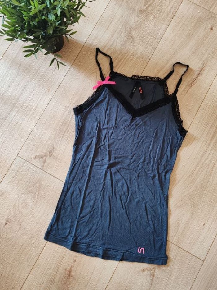 Haut de pyjama bleuté avec dentelle noire Taille XS Undiz En très bon état 🏷️ Réduction en lot activée #fla8pyjama #fla8taillexs