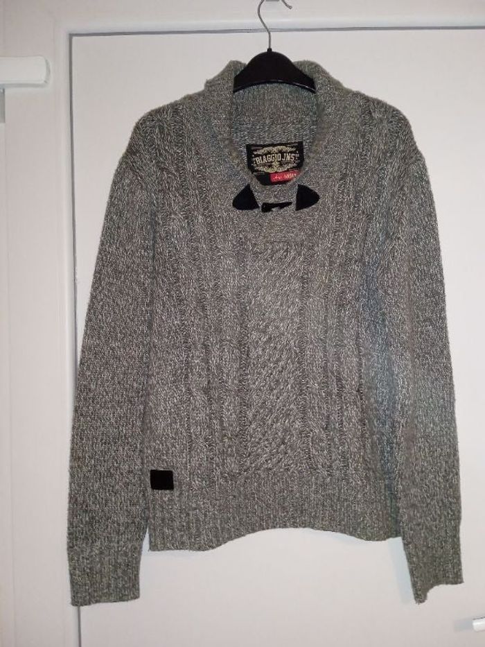 Pull chaud Gris avec un bouton Marque Biaggio Jeans Taille M Porté quelques fois, en bon état voir très bon état
