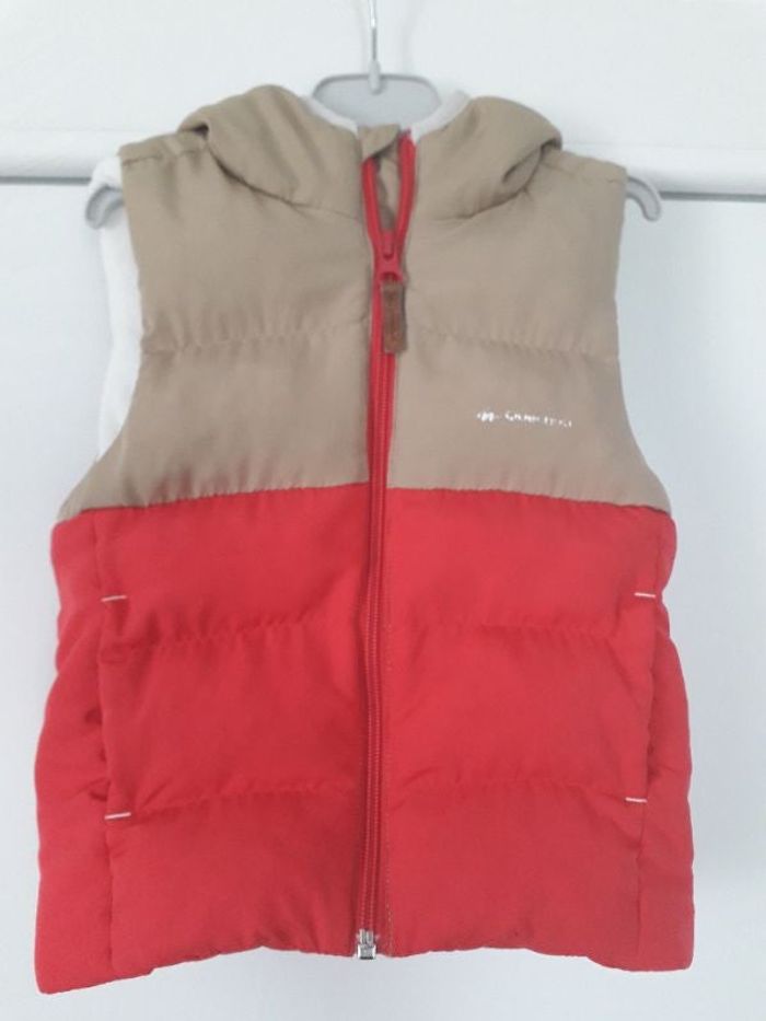 Veste sans manche avec capuche Doublée polaire en partie Taille 3 ans Marque Quechua La veste en elle-même est en très bon état, rarement portée Le seul défaut est le logo Quechua qui s'est partiellement effacé au lavage (voir photo)