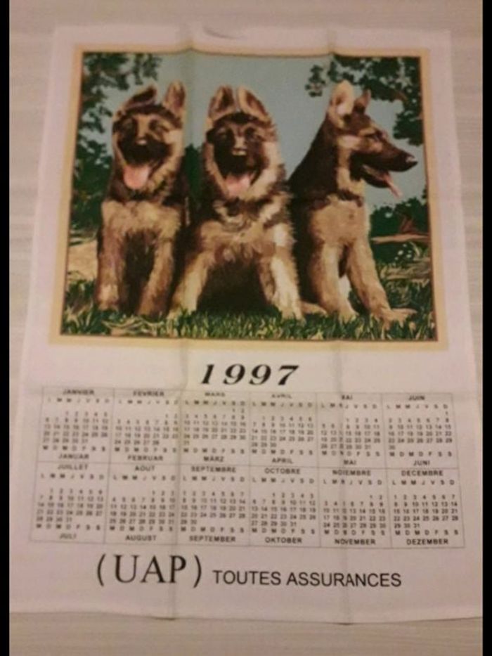Calendrier en tissus année 1997 Motifs chiens Bergers Allemands Neuf sans étiquette, en parfait état Idée cadeau Stocké dans une armoire avec d'autres calendriers