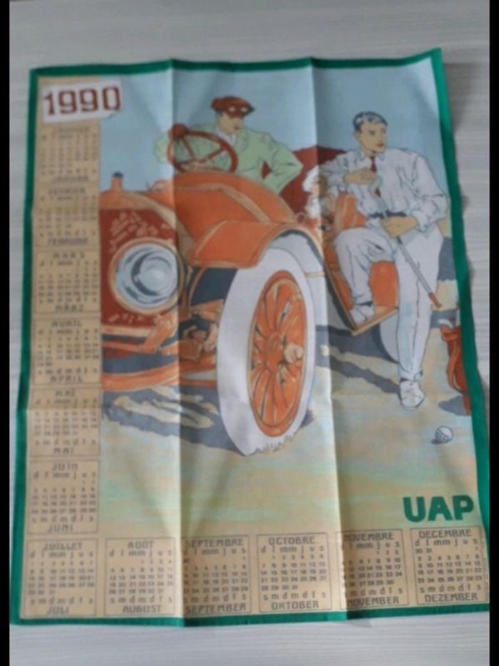 Calendrier en tissus année 1990 Motifs voiture ancienne, golf Neuf sans étiquette, en parfait état Idée cadeau Stocké dans une armoire avec d'autres calendriers