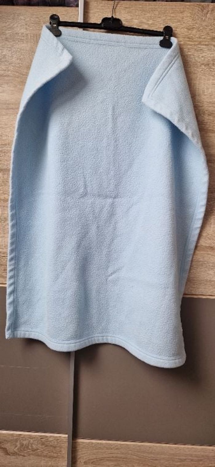 Couverture bleu en très bon état. Longueur : 96 cm. Largeur : 80 cm.