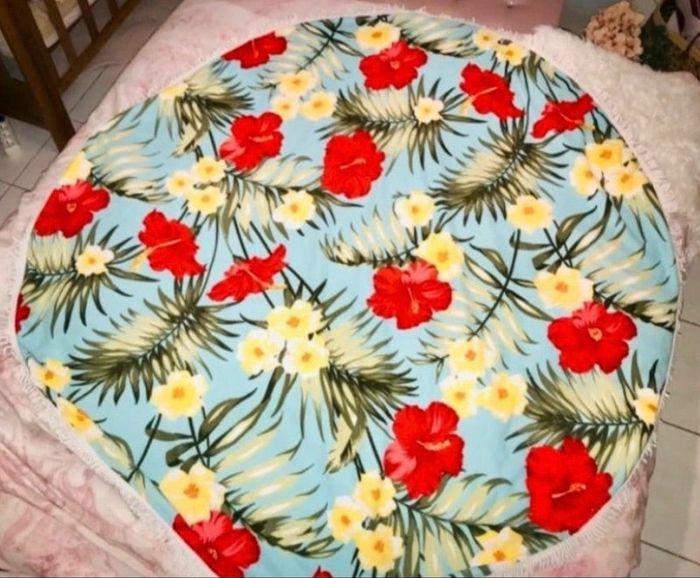 Serviette de plage forme ronde coloré motif fleurie bon état