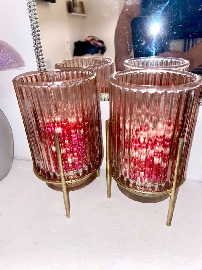 Lot de 2 pots couleur rose et doré avec perle rose bon état