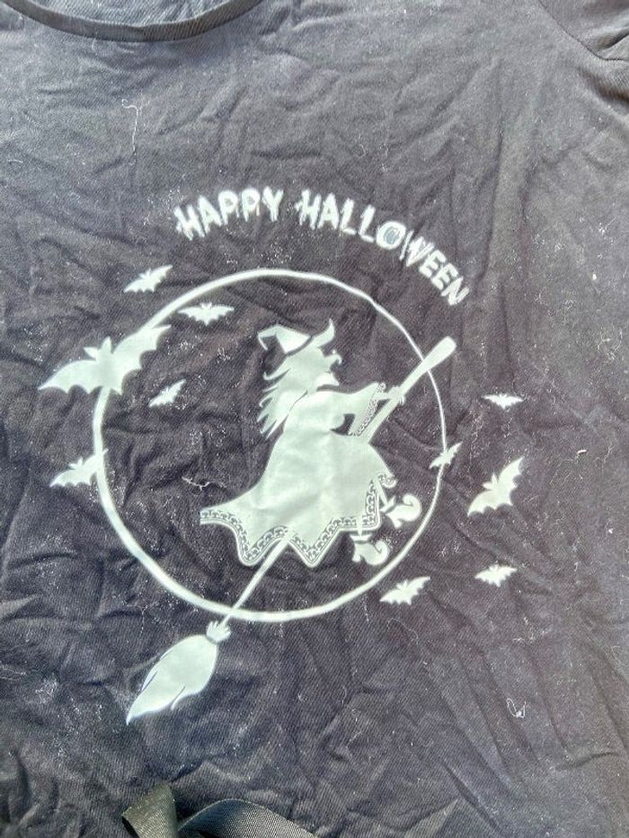 T-shirt couleur noir et blanc motif Halloween sorcière taille 34/36