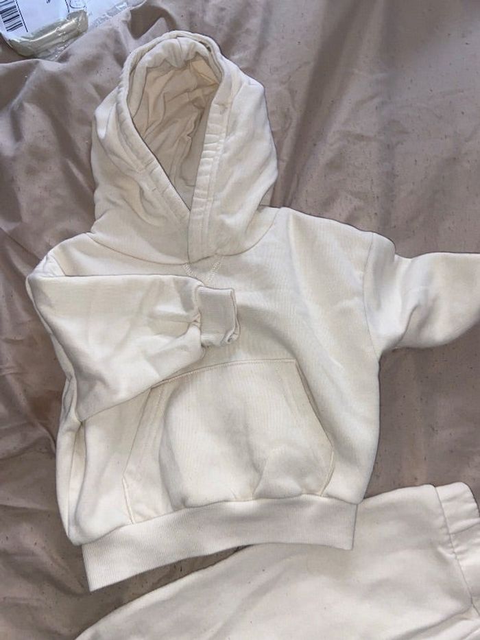 Ensemble de jogging couleur beige crème avec capuche taille 6/9 mois marque primark bon état