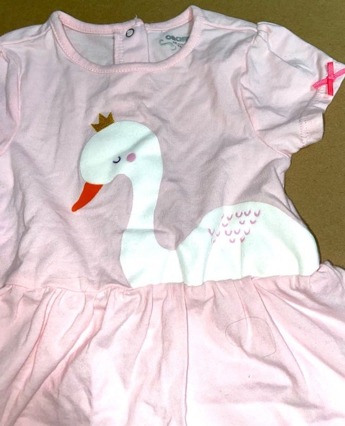 Belle robe couleur rose motif cygne marque orchestra taille 12 mois