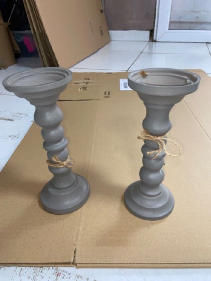 Bougeoirs gris beige manque un capuchon sur l’un des deux bon état
