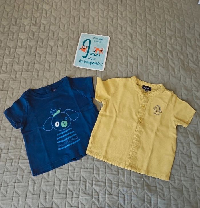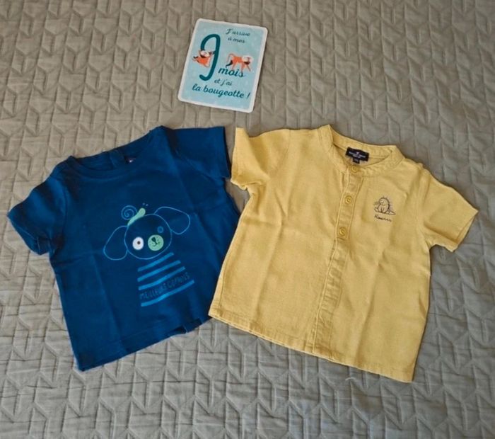 Ensemble 9 mois été T shirt manche courte bleu marine Chemisette lanche courte vert pomme Marque sergent Taille 9 mois Jamais porté #lowchoupinettebebegarcon9mois