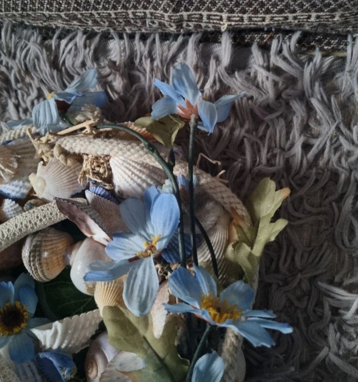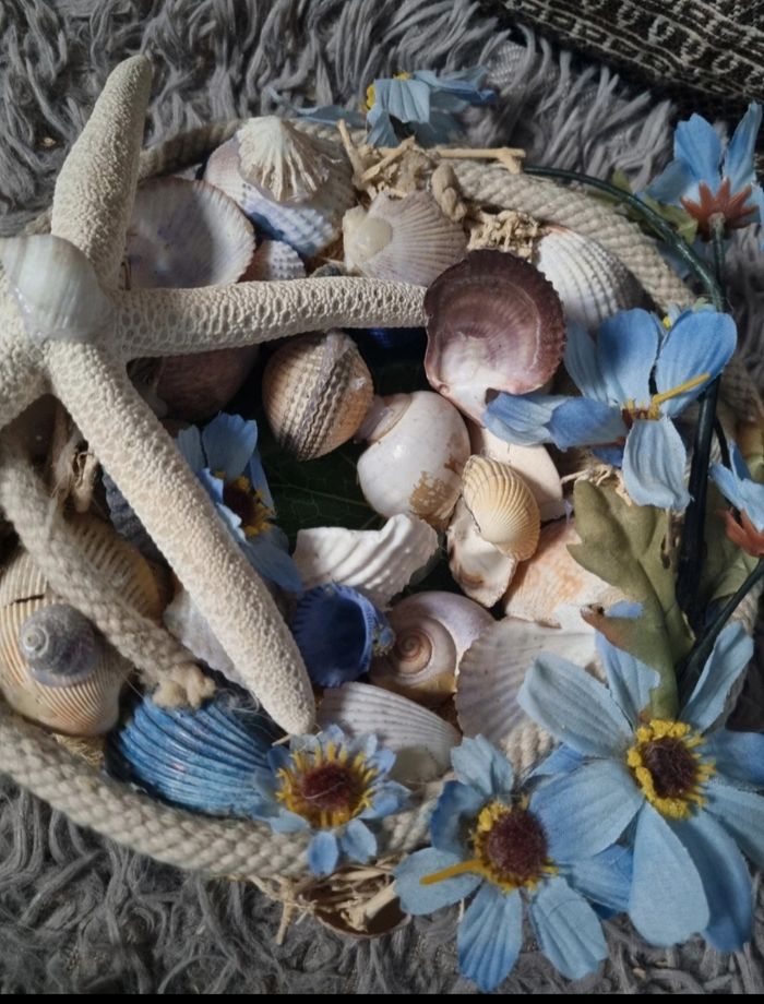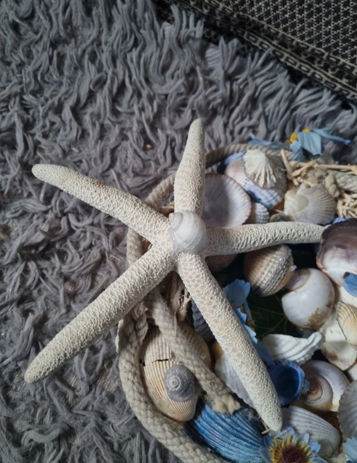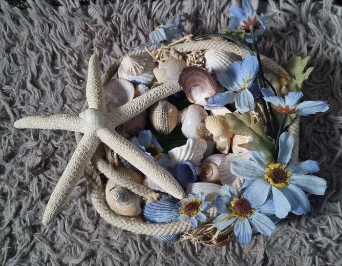 Décoration maritime, coquillages, étoile de mer , fleurs ect...,20x20cm.