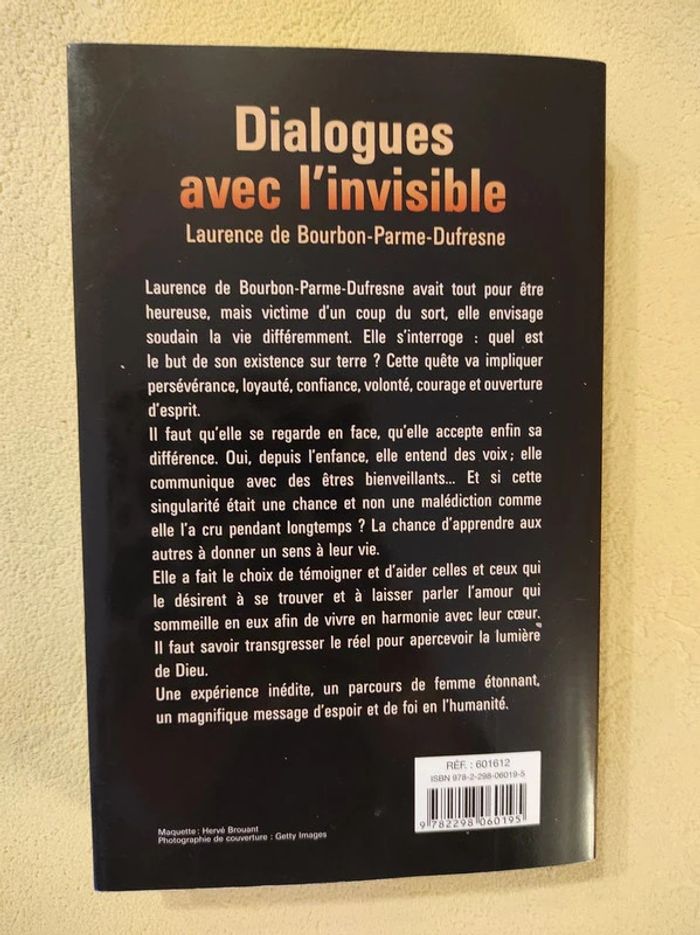 Vends "Dialogues avec l'invisible" de Laurence de Bourbon-Parme-Dufresne Editions France Loisirs 240 pages Comme neuf