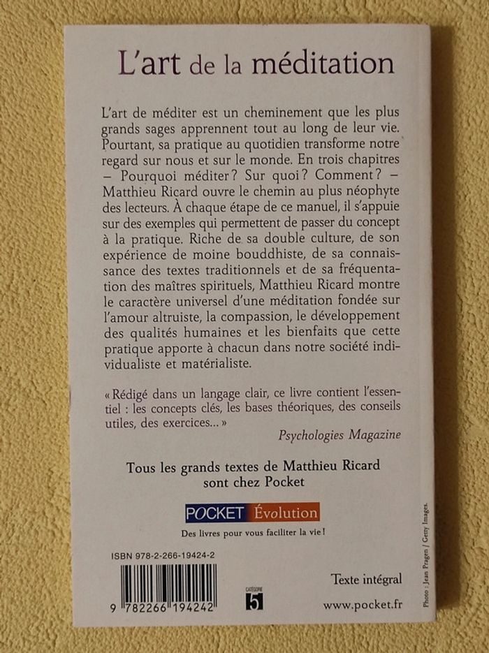 Vends l'art de la méditation de Matthieu Ricard Éditions Pocket évolution Très bon état