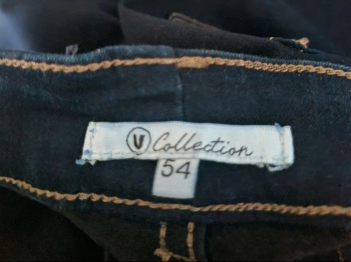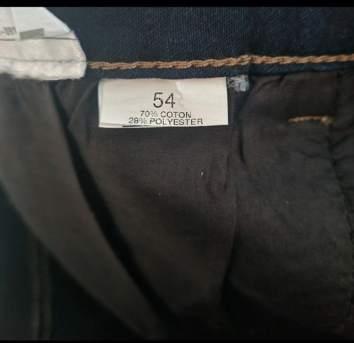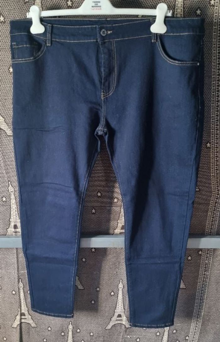 Jean marine taille 54 marque U collection, fermeture zippée avec bouton, longueur 103cm, largeur de la taille 55cm jusqu'à 58cm, largeur cuisse 33cm, largeur cheville 16cm,neuf juste laver.
