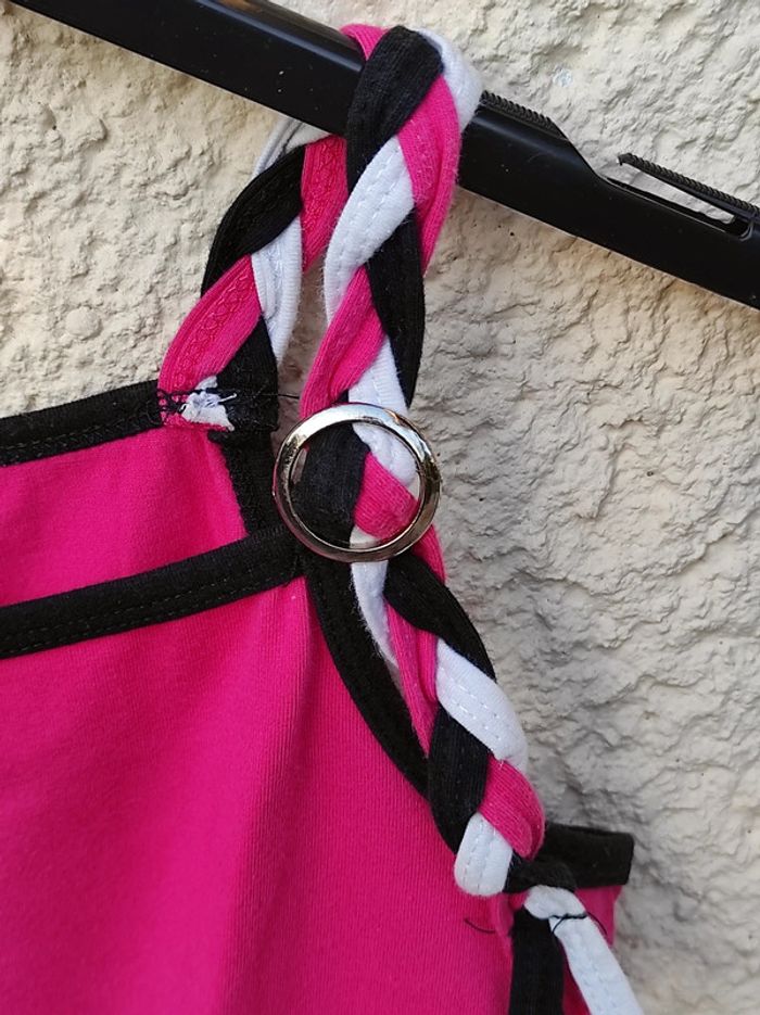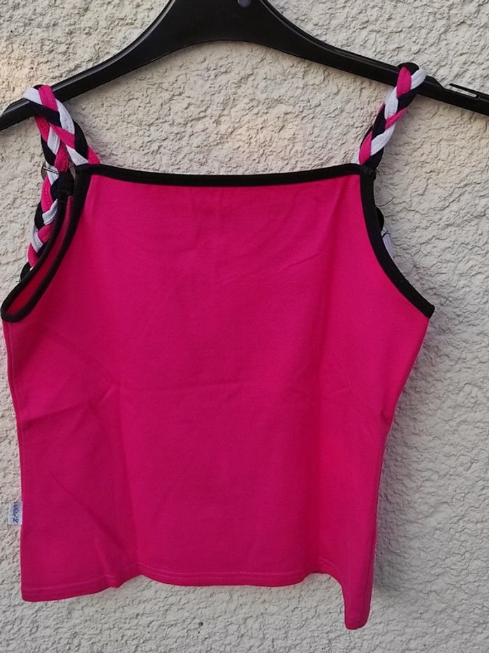Vends débardeur fuchsia Bretelles tressées noir, blanc,fuchsia réglables avec la boucle Taille L mais très petit, équivalent à un S Coton