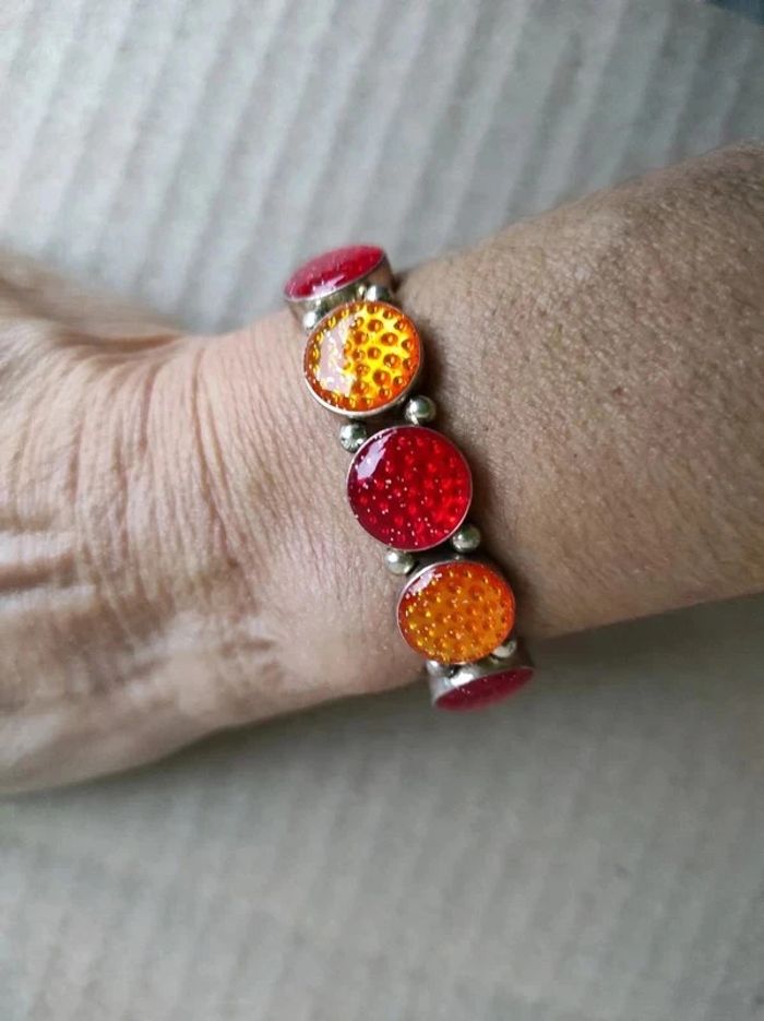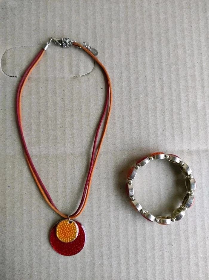 Vends parure collier et bracelet métal rouge et orange