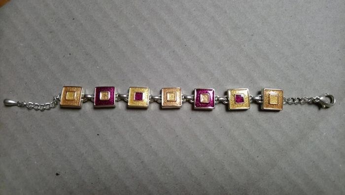 Vends bracelet argenté avec breloques brillantes violet, or, beige doré Neuf
