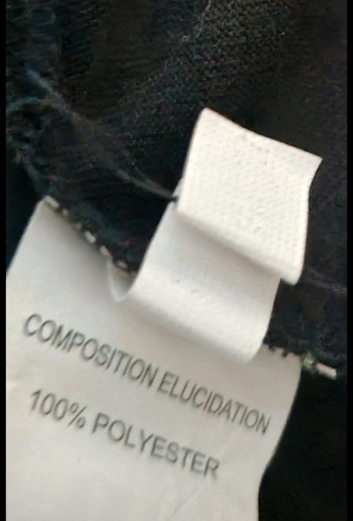 Débardeur noir avec chaînes taille 38,longueur 58cm, largeur 52cm, longueur épaule à aisselle 20cm, largeur aisselle à aisselle 45cm.