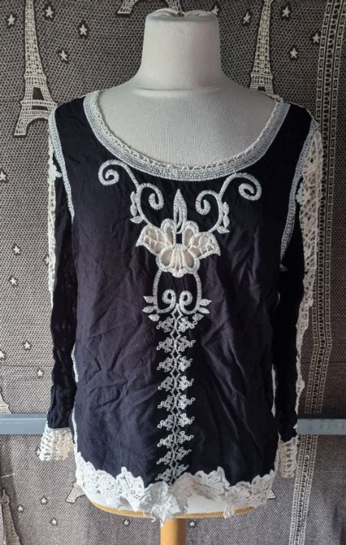 Blouse noir et crème ajouré avec broderie taille 40-42