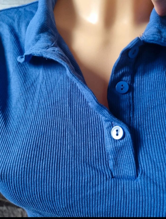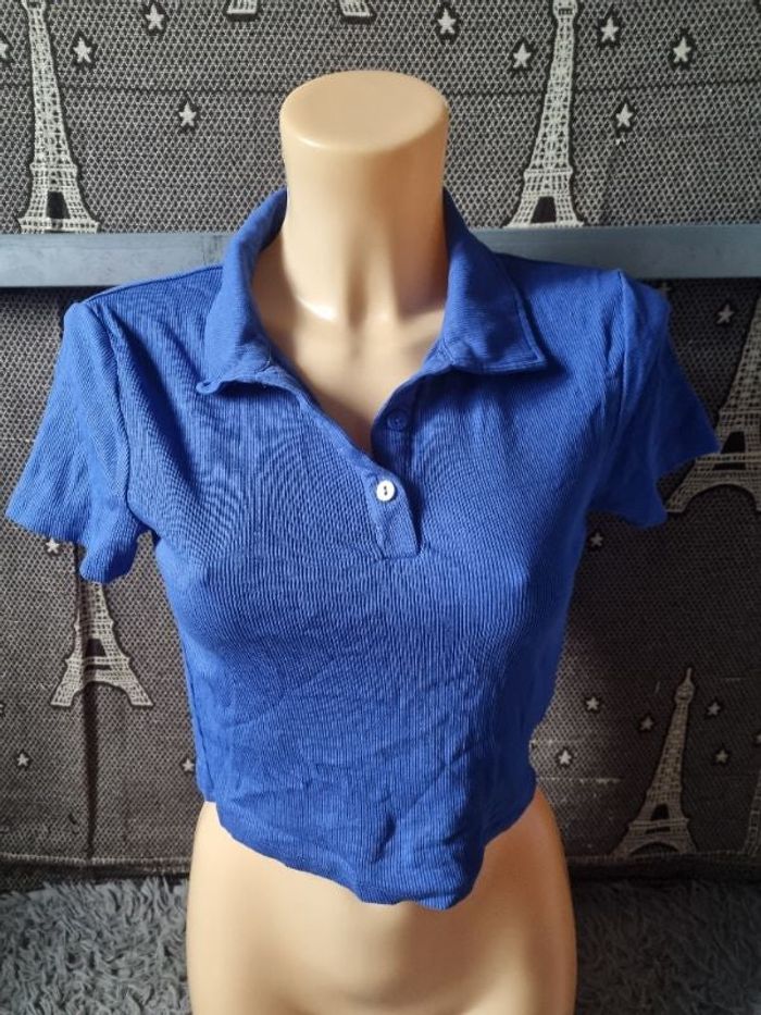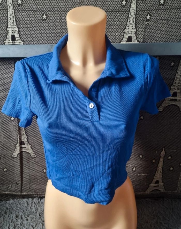 T-shirt court bleu côtelé à  col boutonnée taille M - photo numéro 9