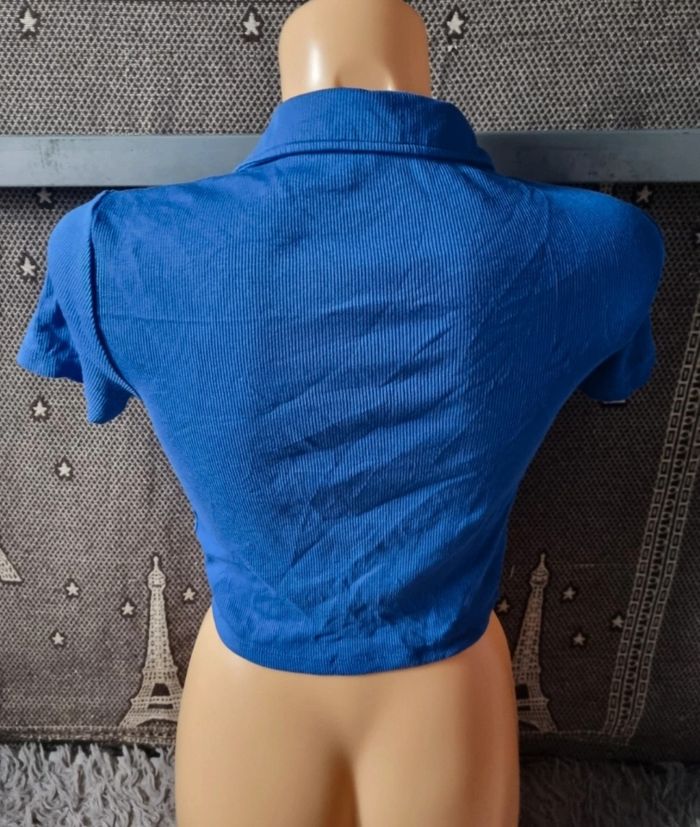 T-shirt court bleu côtelé à  col boutonnée taille M - photo numéro 8