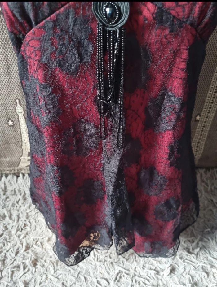 Haut rouge bordeaux à dentelle brodée taille 38-40 - photo numéro 2
