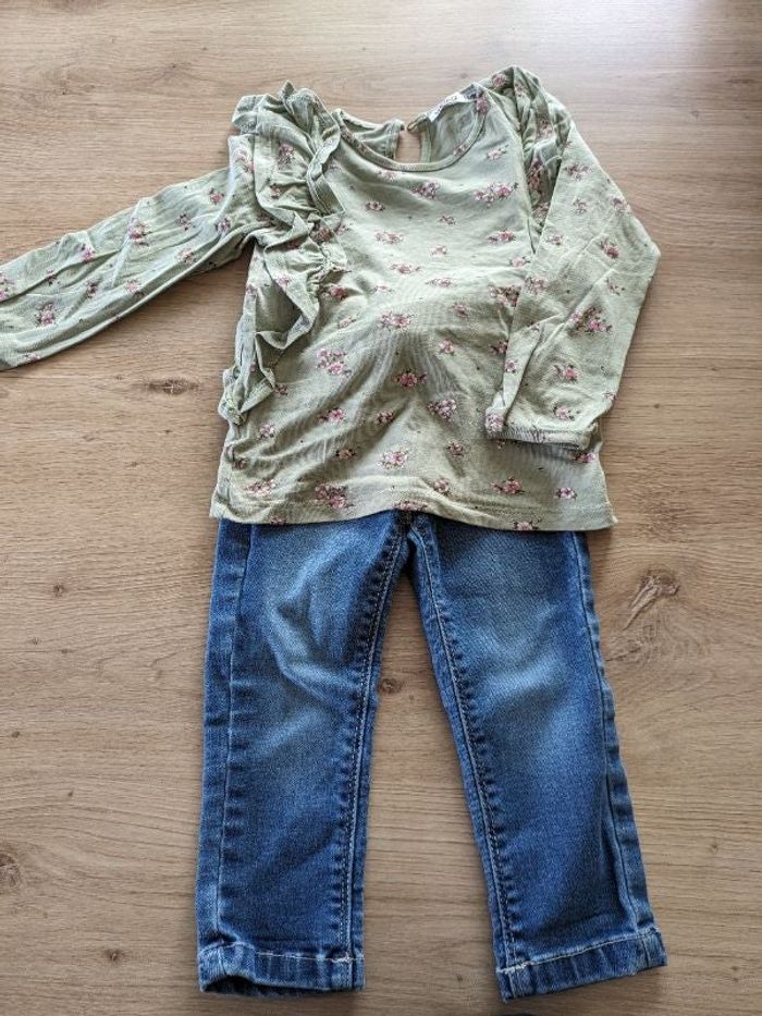 Ensemble jean et haut kaki fleuris