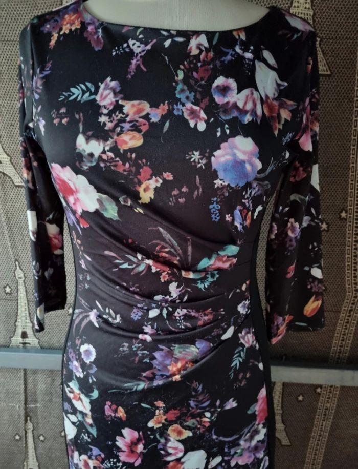 Robe noir à motifs fleurs manches longues taille 38 Norah - photo numéro 3