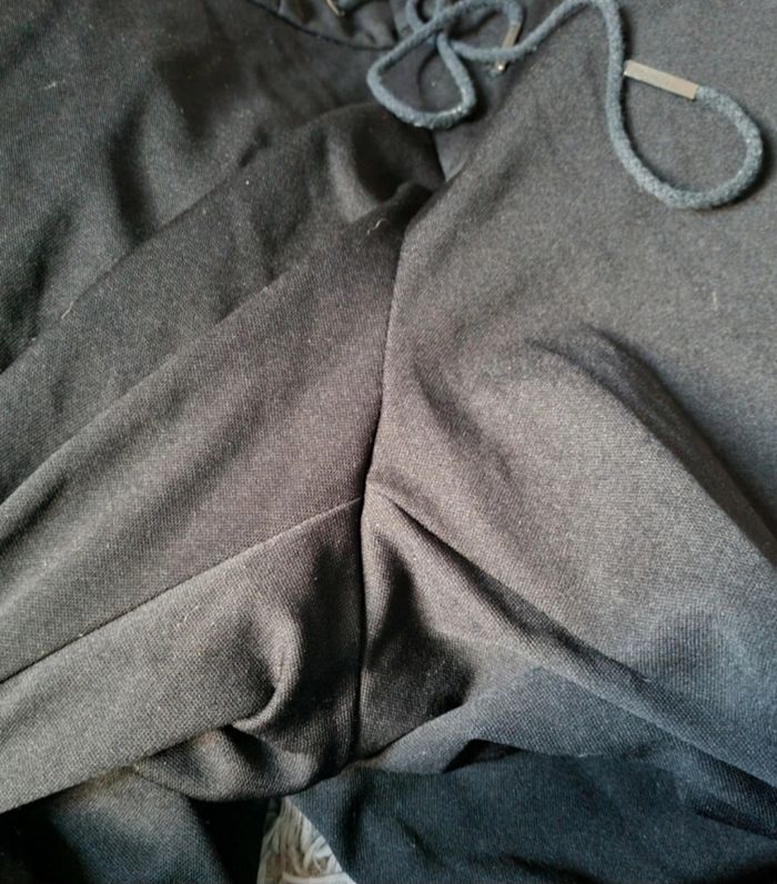 Pantalon noir taille 40 marque Ikks, 2 poches, fermeture zippée avec bouton (cordon décoratif),longueur 92cm, largeur de la taille 42cm, largeur cuisse 26cm, largeur cheville 13cm.