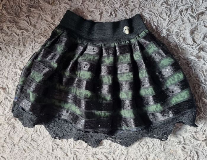 Jupe noir et vert à motifs léopard, taille 3-4ans.