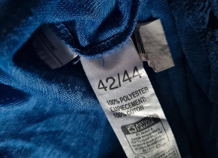 Débardeur bleu avec broderie, taille 42-44 marque U collection, longueur 63cm,largeur 50cm, longueur épaule à aisselle 20cm, largeur aisselle à aisselle 47cm.
