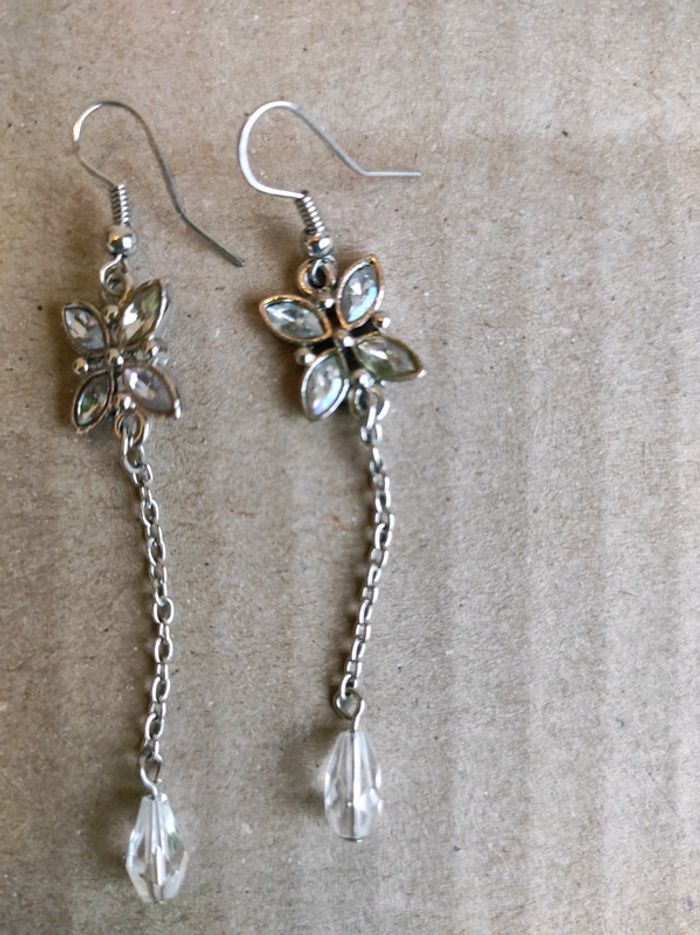 Vends parure collier et boucles d'oreilles Argenté avec motifs en brillants